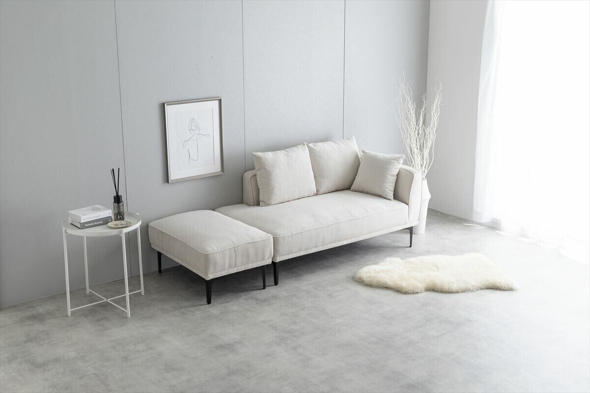 ゆったりくつろげるゆとりのある広々座面と、片側アームレスト仕様で快適なリラックスタイムを実現。セットのオットマンを組み合わせることで、お部屋の間取りやシーンに合わて柔軟にレイアウトを変更できます。また、脚も取り外せるロー設計のため圧迫感が少なく、ワンルームなどのスペースに余裕のないお部屋にもピッタリです。
