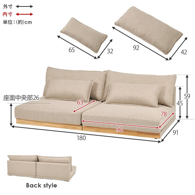 サイズ (約)幅180×奥行91×高さ59×座面高26cm