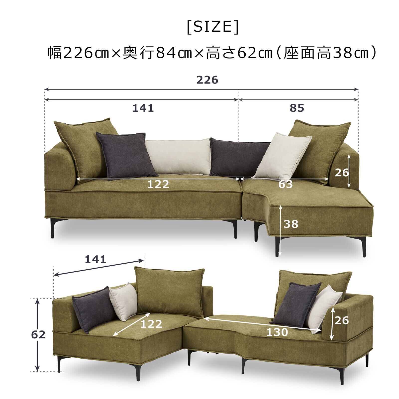 W2260×D840×H620(mm) 座面高380(mm)