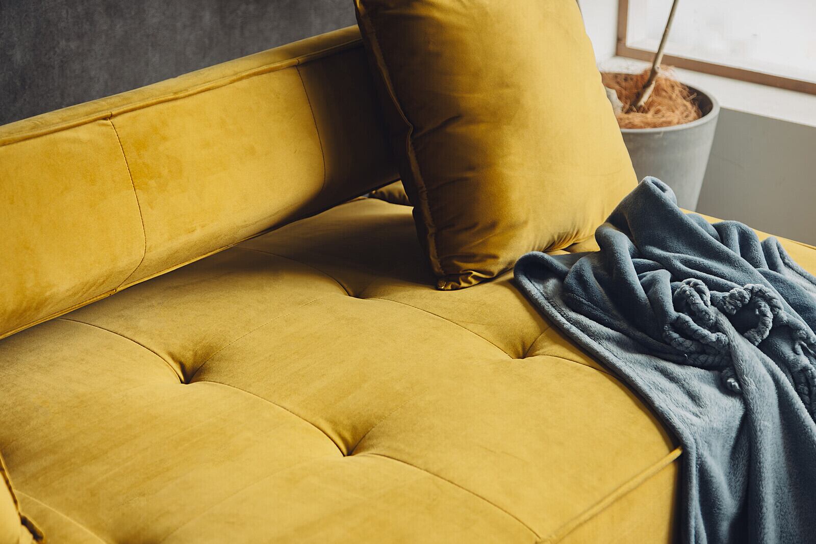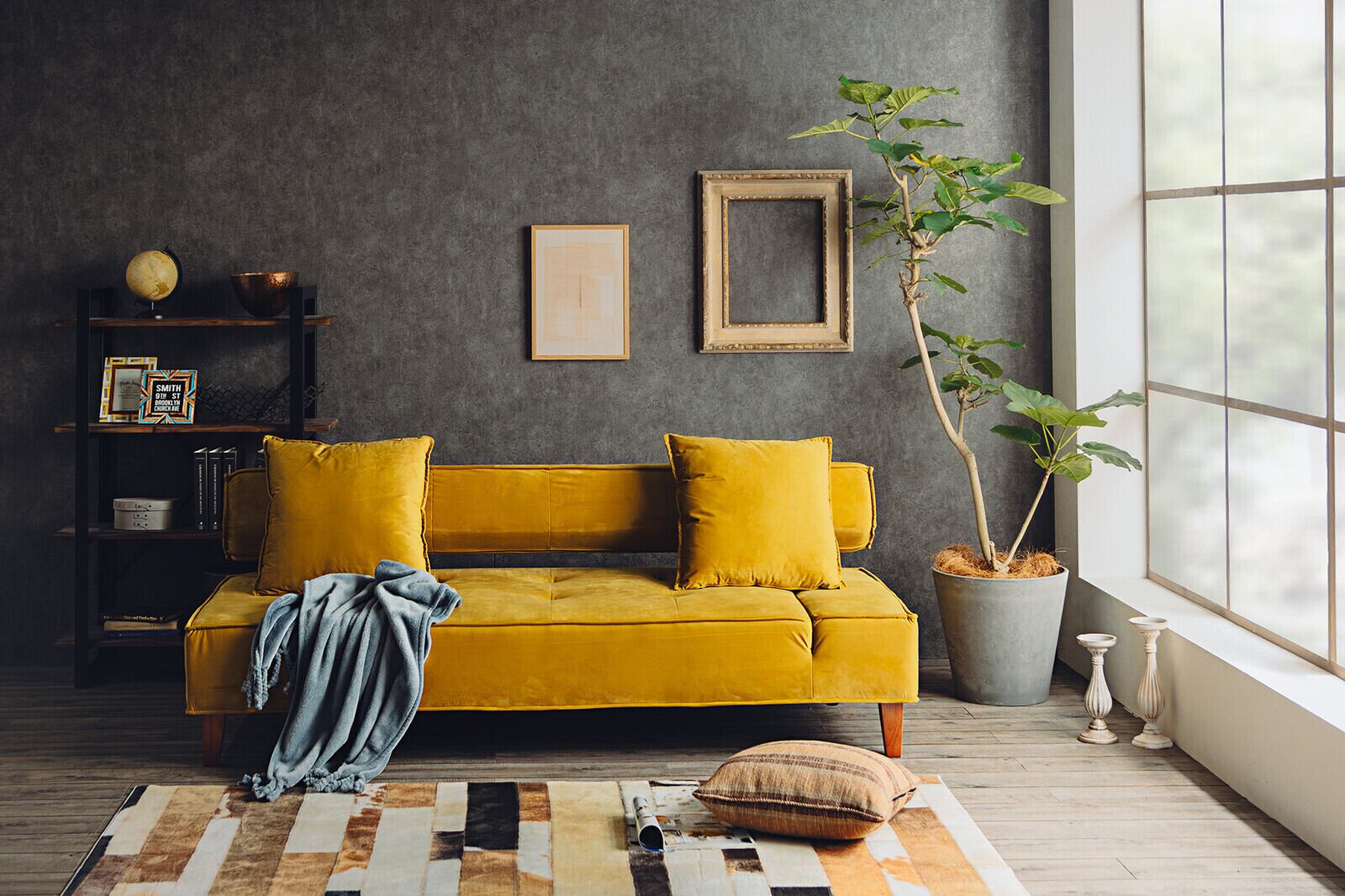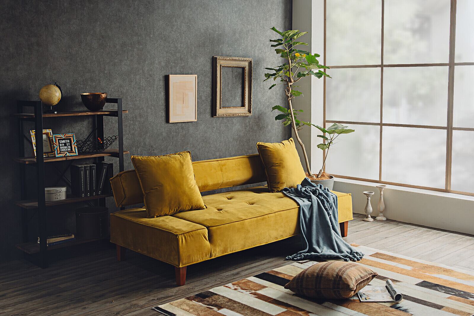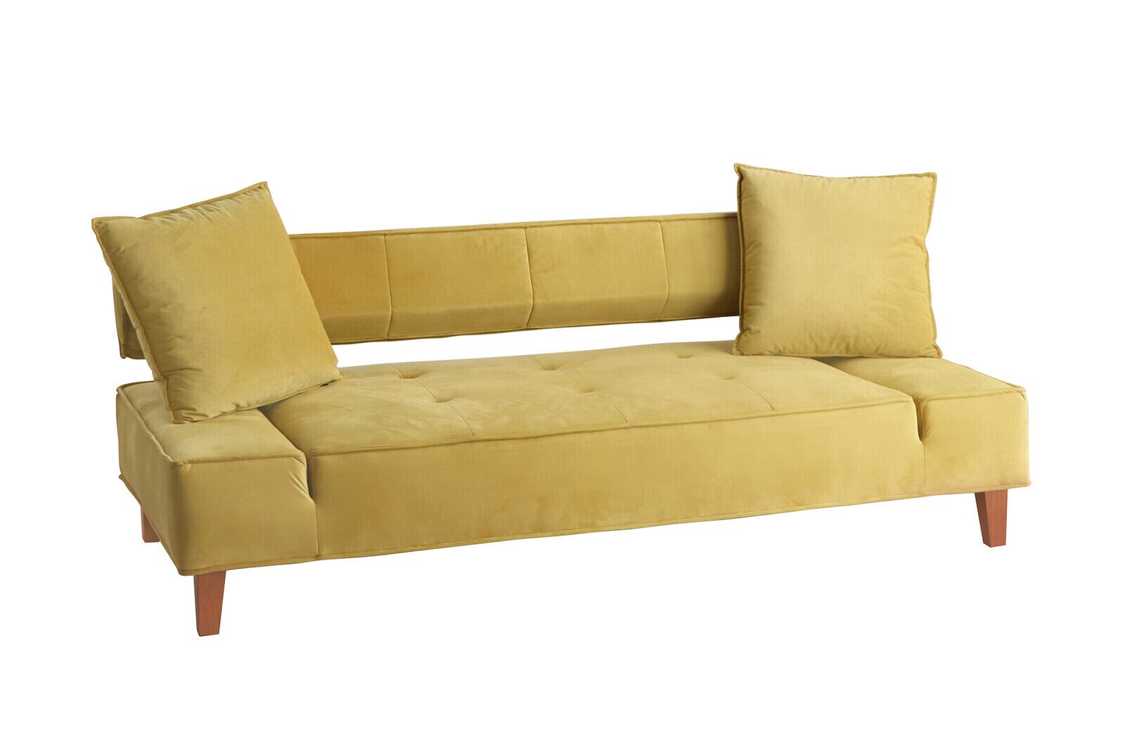 ソファベッド モダン クッション2個付き イエロー / グレー