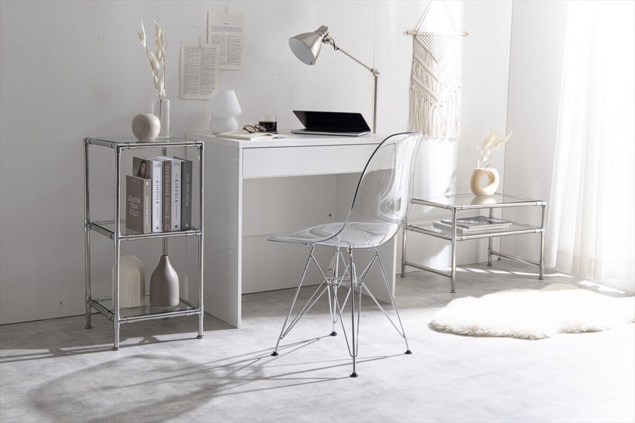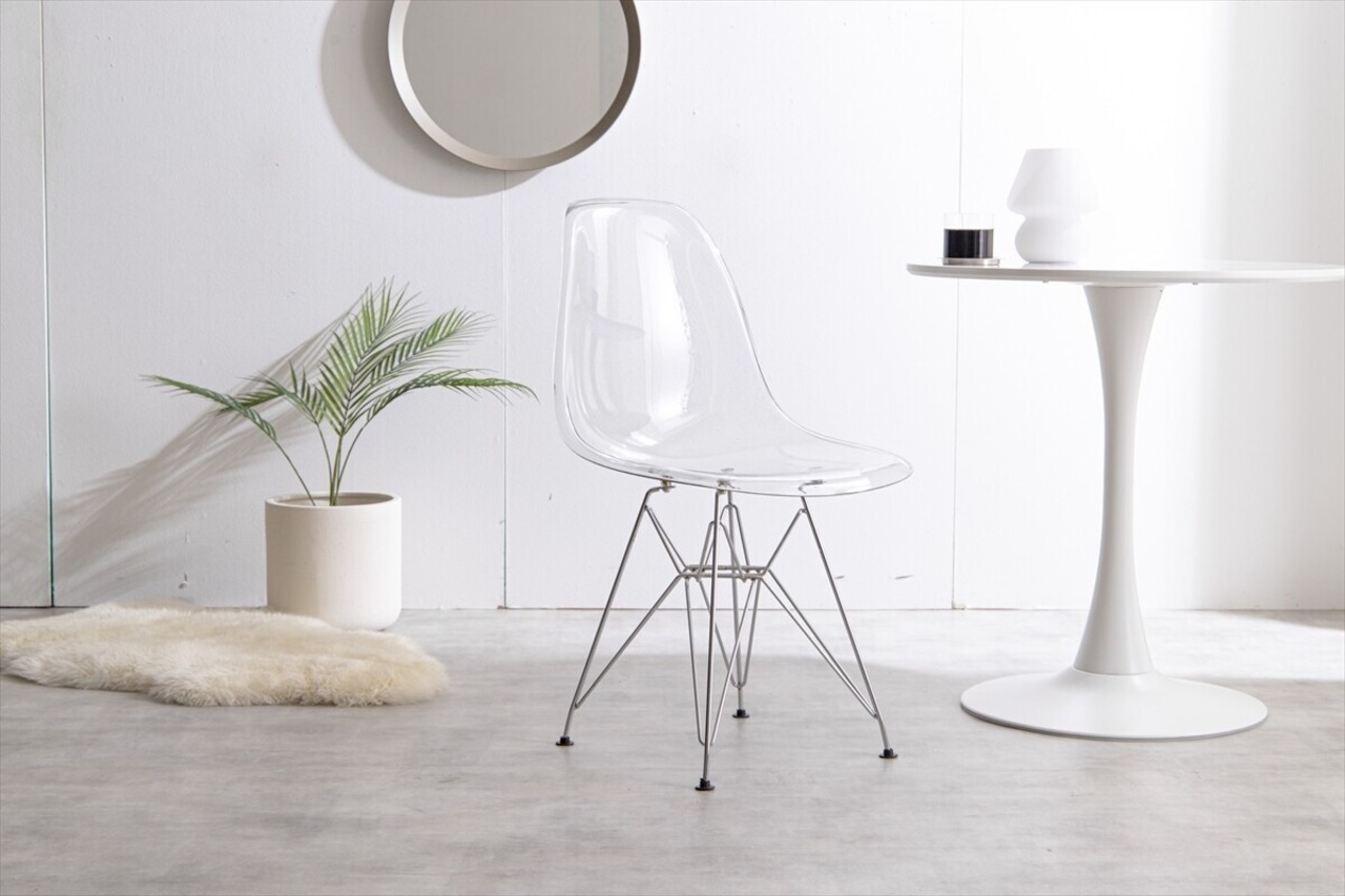 透明感が高く美しい座面と、線の細い脚部の組み合わせが印象的な『Eames DSR』イームズサイドシェルチェア。透明感あふれるガラスのような一体型の座面は、お部屋を洗練されたクリアな印象に。また、美しさと座り心地を両立させる曲線座面は身体にフィット。デザイン性に優れた脚部はチェア全体をスタイリッシュに引き締め、存在感を発揮します。