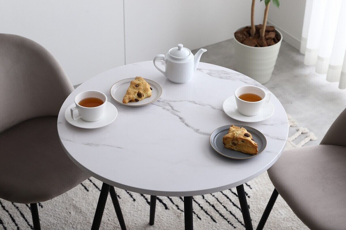 清潔感溢れる上品な佇まいの『Mia(ミア)』の大理石柄テーブル。高級感漂う大理石柄は空間のポイントとなりながら、お部屋を明るく見せ、ワンランク上の上質な空間を演出します。また、角のない丸型テーブルは、コンパクトで圧迫感を与えないので、ワンルームなどの限られたスペースにも最適です。さらに、清潔感のあるホワイトカラーは置くものの魅力を引き立て、料理などを色鮮やかに魅せることができます。ご家族やご友人でテーブルを囲んで楽しいひと時をお過ごしください。