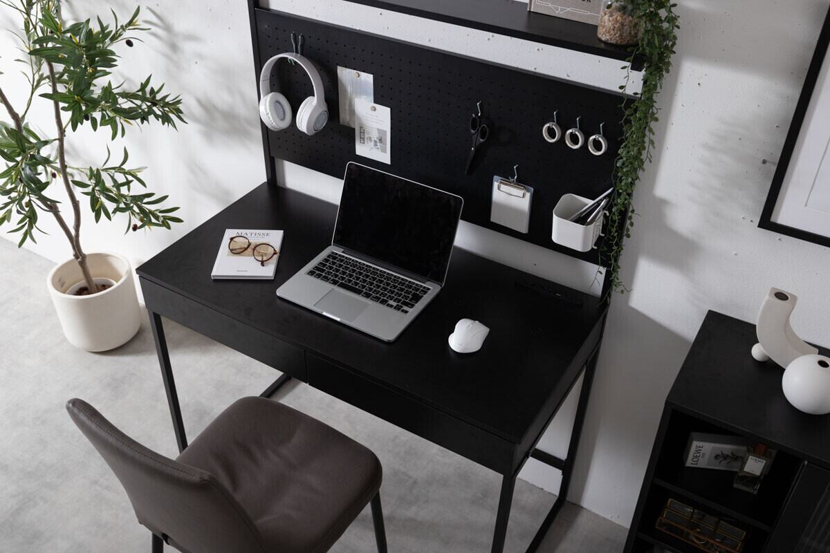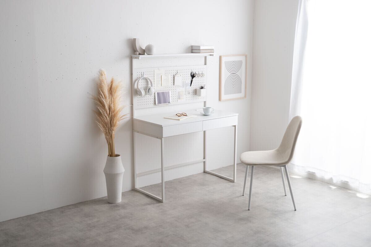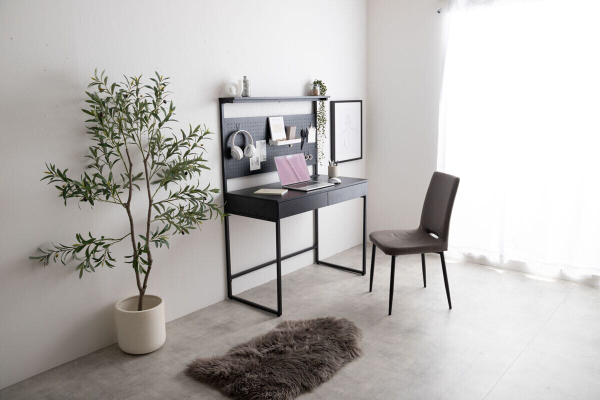 自分好みにアレンジ自在『Finley(フィンレー)』有孔ボード・引き出し付きデスク。買い足さずともこれ1台に備わった優れものです。付属のフックは2種類。収納物に合わせてお使いいただけます。壁面収納することで、整理整頓しやすく、常に綺麗な作業スペースを作れるのが魅力です。またUSB・2口コンセント付きで充電も可能。使いがってにこだわった万能デスクで自分好みのお気に入りスペースをお楽しみください。