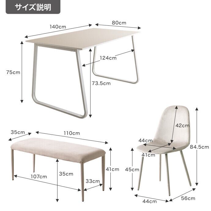 【商品重量】テーブル:約19.1kg、チェア(1脚あたり)約3.8kg、ベンチ:約7.6kg