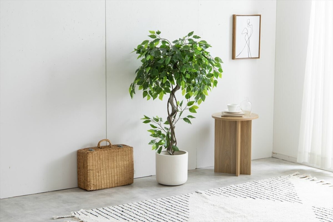 日常空間にグリーンを気軽に取り入れられる、光触媒人工観葉植物『Nature(ナチュレ)』シリーズのベンジャミン。光触媒人工観葉植物は、照明光が当たることで消臭・抗菌・防汚・ホルムアルデヒド分解の効果を発揮します。人工物でメンテナンスも簡単な観葉植物は、手軽に取り入れやすいのが魅力。面倒な水やりや剪定が不要なので、忙しくてなかなか植物のお世話ができない方にもおすすめです。また、ディテールにこだわり、葉や実の色付きから枝付きまで自然な風合いを再現。お部屋のインテリアに馴染むように細部まで丁寧に作り上げています。
