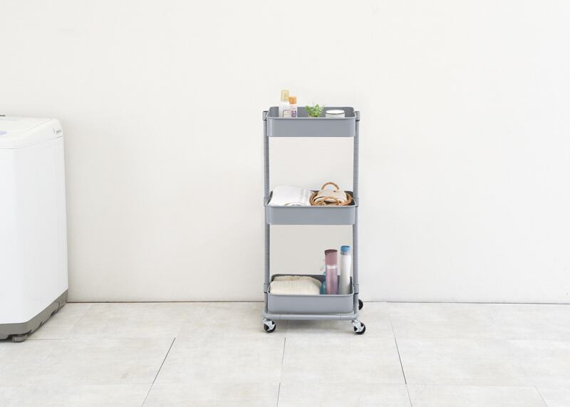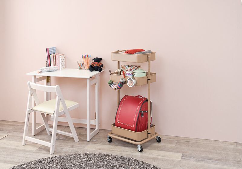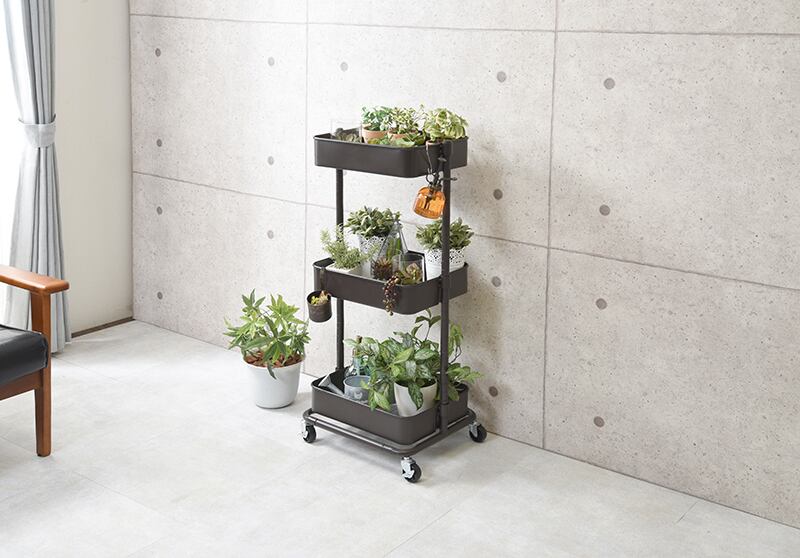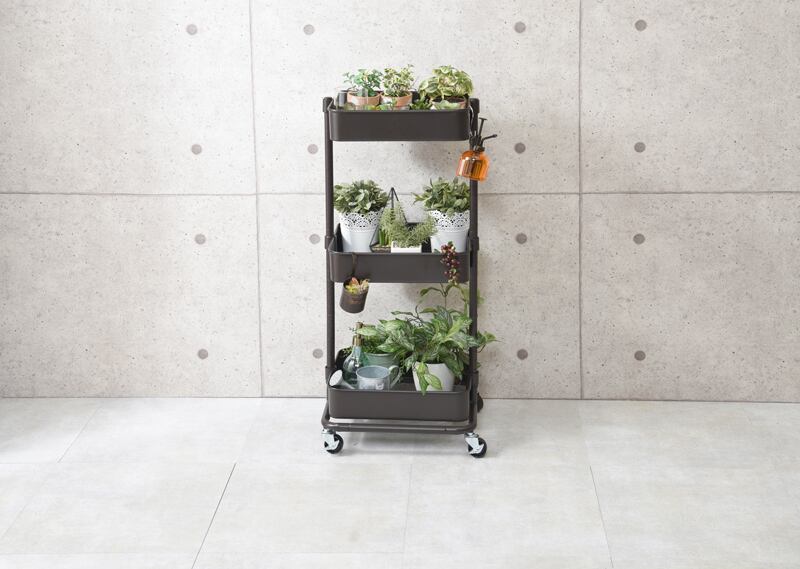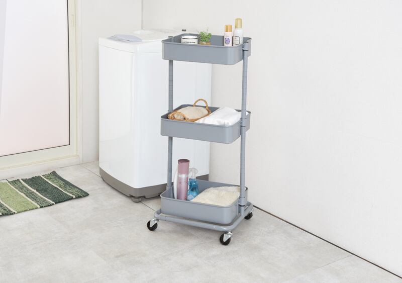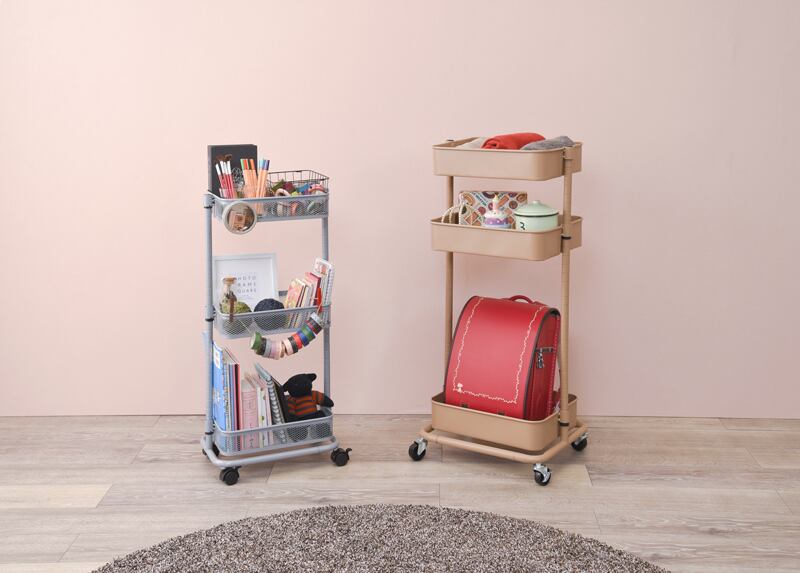かごの高さが変えられる。物が落ちにくい細かいメッシュのマルチワゴン